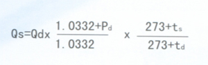 Qs標準狀態(tài)風量(m3/mln)Qn基準狀態(tài)風量(m3/min)。