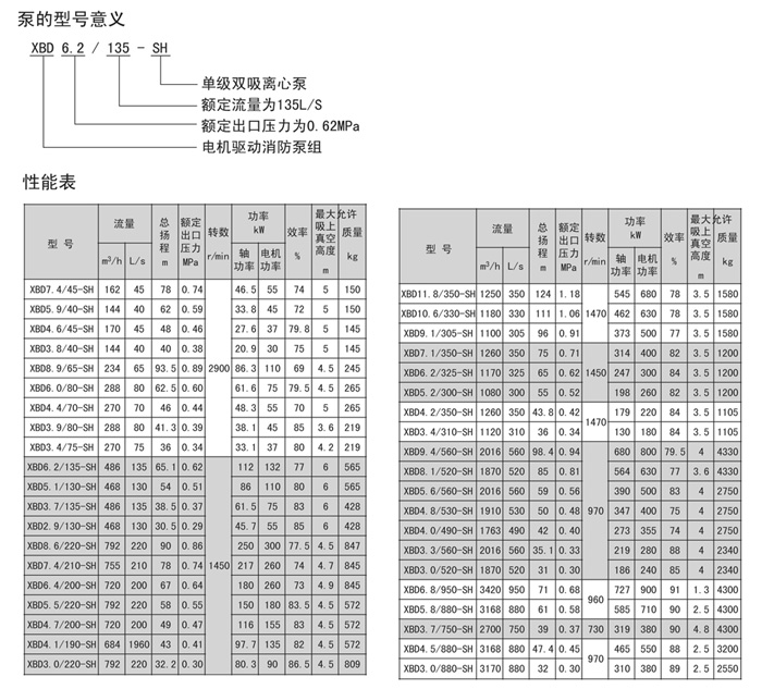 XBD-SH型消防泵系單級、雙吸、泵殼水平中開式離心泵,主要用于建筑、消防給水,供輸送溫度不超過80℃的清水及物理化學性質類似于水的液體之用。改變葉輪、密封