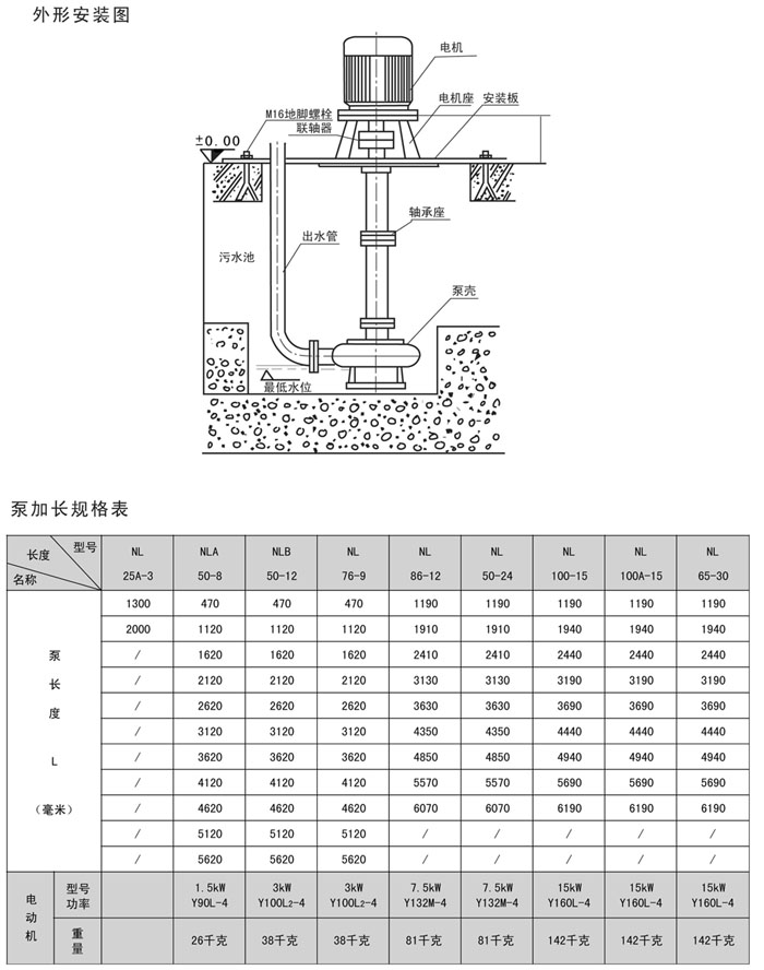 NL型多用液下泵系單吸離心泵,使用于礦山、造紙、印染、環保、石墨、云母、黃金、陶瓷、煉油、石油、化工、農場、鹽場、磺場、染化、釀酒、食品、化肥碓化、選廠、建筑、大理石廠、金礦、泥漿、流沙、泥塘、污濁液送吸濃稠液、裝料及懸浮物質的污水作業,也可作煤礦排水及含有泥塊的流體。