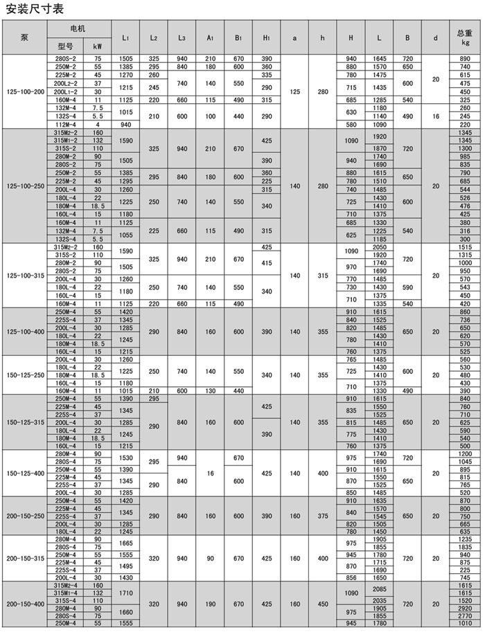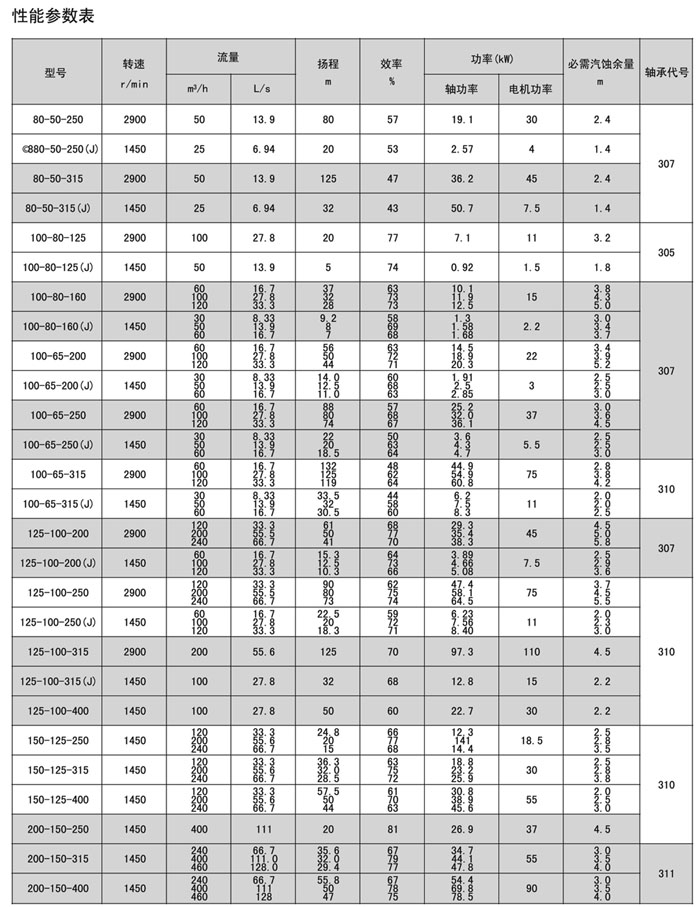 本系列泵共有33個基本型,每種型號都可以通過切割葉輪獲得較低的流量和揚程,用戶在訂貨時可向本廠提出要求。